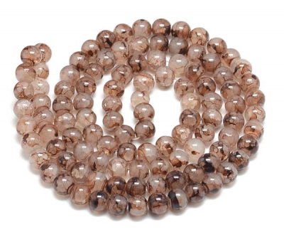 Mjölkvita pärlor gjorda av krackelerat glas. Pärlorna har ett effektfullt, brunt mönster i krackeleringen. Priset avser 45 st (det kan vara någon pärla mer eller mindre). Storlek ca 8 mm, hålet är ungefär 1,3 mm.