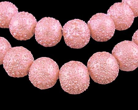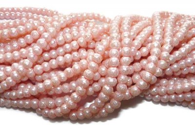 Ljust rosa "ispärlor" (de har en ojämn yta som ser lite ut som de var täckta av is). Priset avser en sträng/påse med ungefär 72 pärlor. Storlek ca 6 mm.