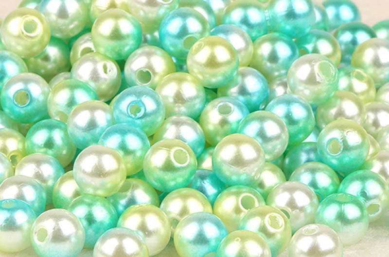 Tvåfärgade pärlor av vaxad akryl. De går i färgerna turkost, grönt och gult. Priset avser 60 st pärlor. Storlek ca 6 mm, hålet är ungefär 1,4 mm. De finns även i storlek 8 mm.